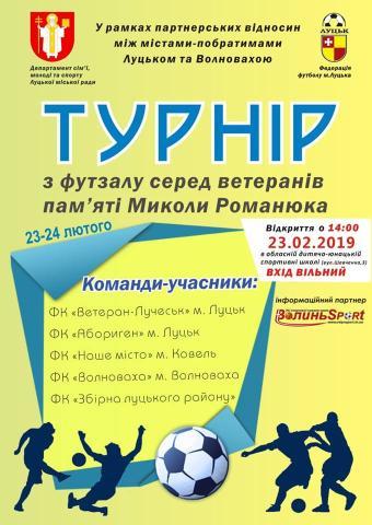 Упродовж двох днів 23-24 лютого зал обласної ДЮСШ прийматиме ветеранські змагання з футзалу, що присвячені пам’яті Миколи Романюка.
