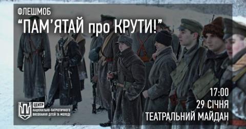 Задля вшанування пам’яті героїв Крут 29 січня о 17:00 на Театральному майдані міста Луцька відбудеться флешмоб “Пам’ятай про Крути!”.