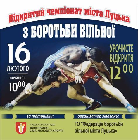 16 лютого 2019 року за підтримки Департамент сім'ї, молоді та спорту Луцької міської ради у спортивному залі СРК "Адреналін Сіті" (вул. Карбишева, 1) відбудеться відкритий чемпіонат міста Луцька з боротьби вільної.