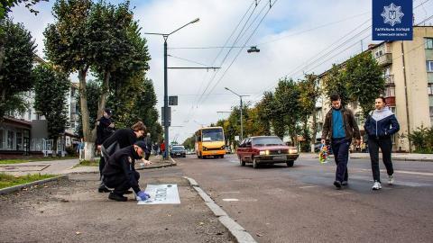 Декілька годин поспіль ми їздили спільно із представниками патрульної поліції рідним містом і обирали найбільш небезпечні пішохідні переходи, щоб нанести попереджувальні написи на кшталт «Подивись» та «Візьми дитину за руку».