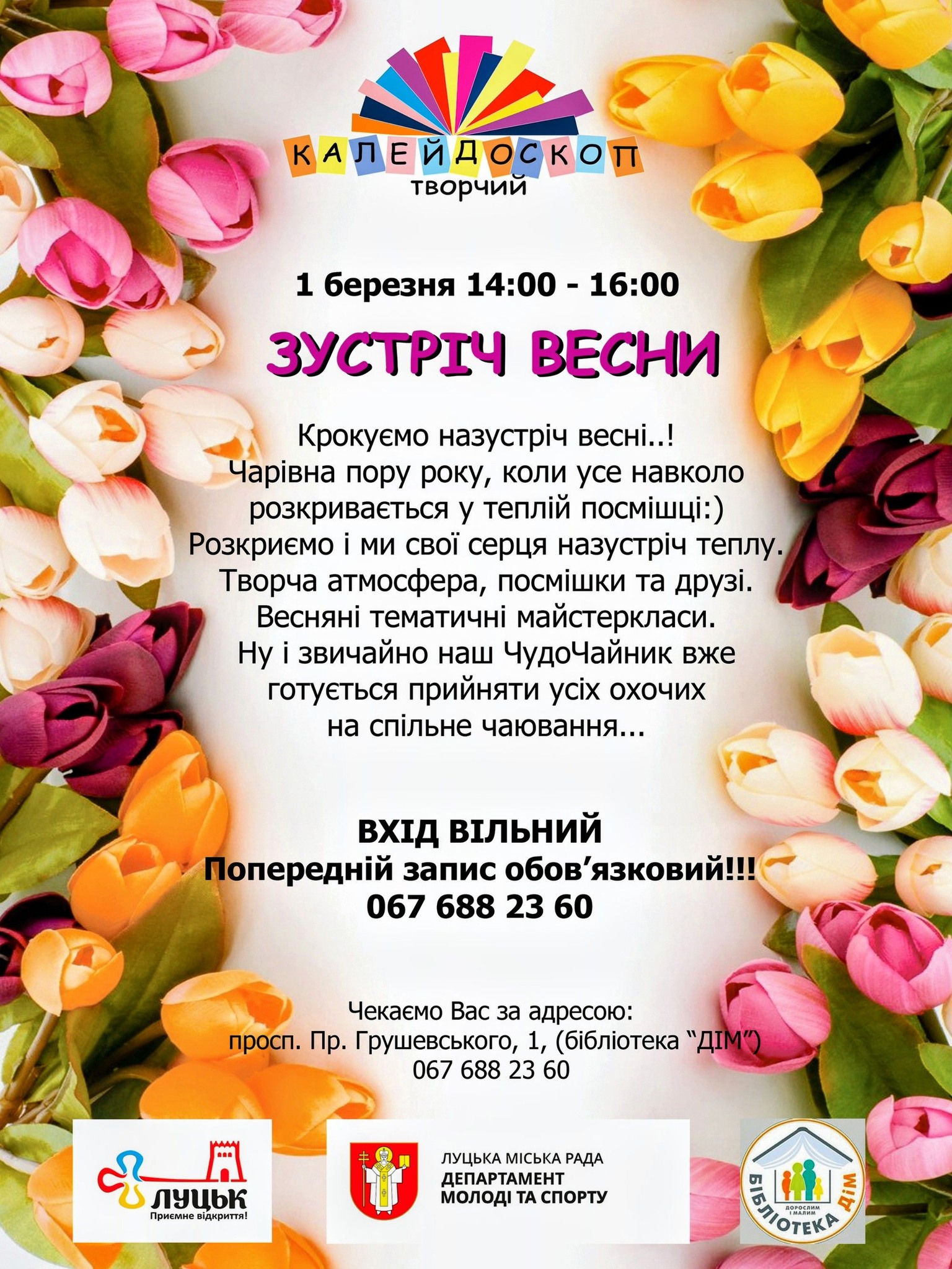 Творчий калейдоскоп спільно з департаментом молоді та спорту запрошує лучан та гостей громади на теплий, творчий і по-справжньому весняний майстерклас!