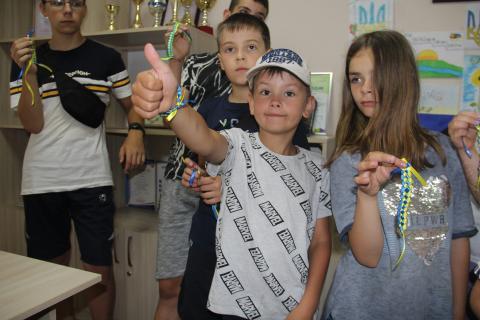 Ніна Дмитрівна разом із вихованцями плели браслети із кольорових атласних стрічок (фенечки).