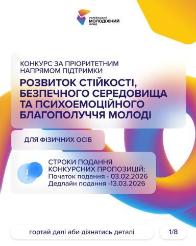 УМФ запускає грантовий конкурс для фізичних осіб у межах пріоритетного напряму «Розвиток стійкості, безпечного середовища та психоемоційного благополуччя молоді».