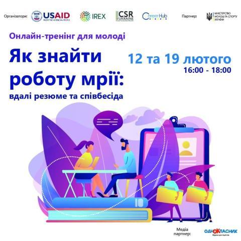 Онлайн-тренінг для молоді «Як знайти роботу мрії: вдалі резюме та співбесіда.»