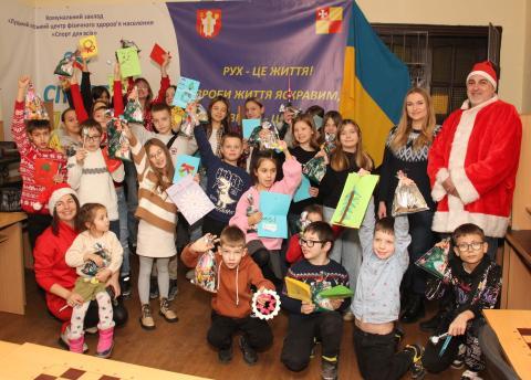 Після творчої роботи діти радісно зустріли Санту із помічником, які подарували всім учасникам подарунки з нагоди різдв'яно-новорічних свят.