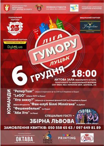 6 грудня за підтримки департаменту сім*ї, молоді та спорту відбудеться старт нового проекту Ліга Гумору Луцьк .
