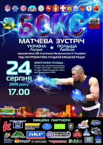24.08.2019 у нашому місті відбудеться міжнародна матчева зустріч з боксу збірних команд міста Луцька та Люблінського Воєводства, присвяченої 28-ій річниці Незалежності України.
