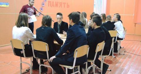 Учні 8-го, 9-го та 10-го класів спробували свої сили у історичному брейн-рингу, який проводив спеціаліст “Центру національно-патріотичного виховання дітей та молоді у місті Луцьк” Максим Каширець.