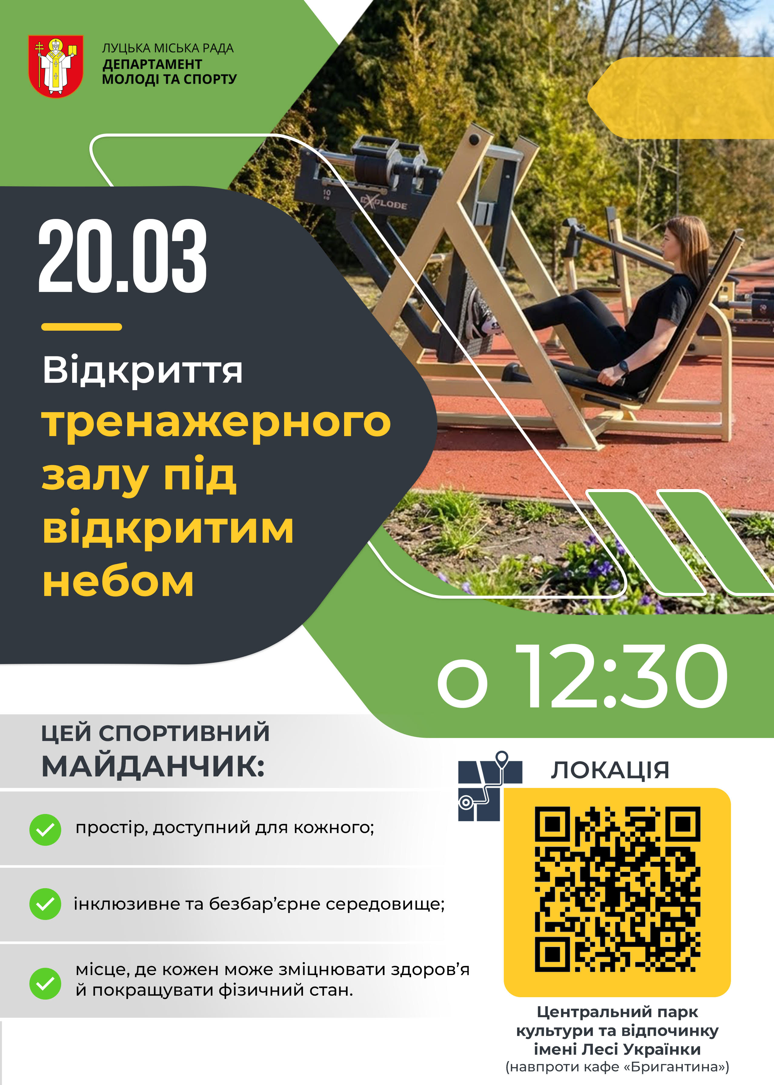 Запрошуємо на непересічну подію – відкриття першого у місті тренажерного залу під відкритим небом.