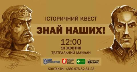 “Центр національно-патріотичного виховання дітей та молоді у місті Луцьк” запрошує тебе до участі в історичному квесті “Знай наших!”, який стартуватиме 13 жовтня о 12:00 на Театральному майдані!