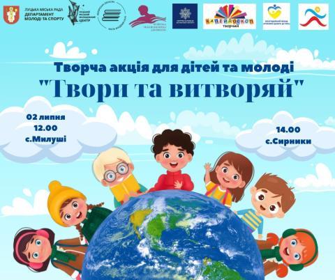 Отож, зустрічайте нашу дружню команду з творчою акцією для дітей та молоді «Твори та витворяй» в с. Милуші й с. Сирники Луцької міської територіальної громади!