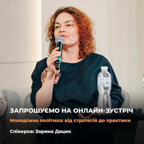 Спікерка – начальниця відділу молодіжної політики департаменту молоді та спорту Луцька міська рада Заріна Дацик. Вона поділиться досвідом, як у Луцькій громаді вдається розвивати ефективну співпрацю влади та молоді. Зокрема, розкаже про: